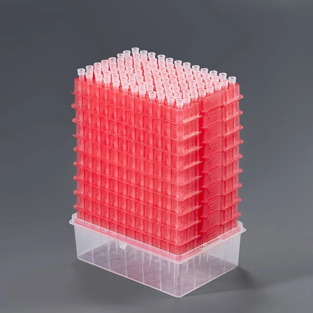 1 to 10 μl Universal Fit Tips, Low retention, PP, Racked, Sterile, DNase & RNase free, Refill pack, Red rack, 32mm, 96 Tips/Rack, 10 Racks/Pack, 10 Packs/Case