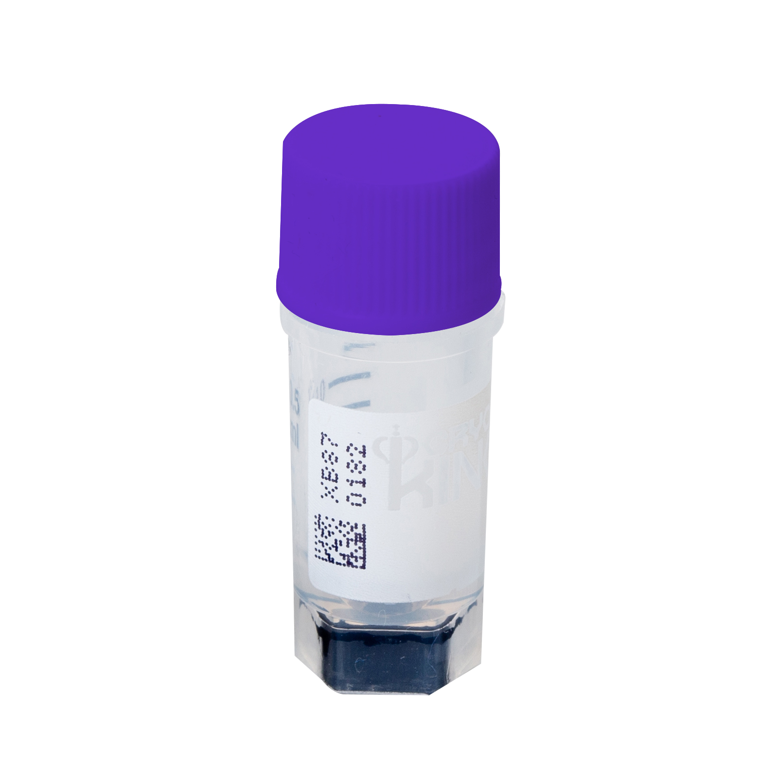 CryoKING 0.5ml cryogenic vials, purple caps, PP, 2D Barcoded + side code, self-standing,PP, autoclavable, radiation sterilization, DNase & RNase free, endotoxin free, foreign DNA free, no O-ring, Working Temperature from -196°C to 121°C, 25 Pieces/Bag, 20 Bags/Pack, 2 Packs/Case.