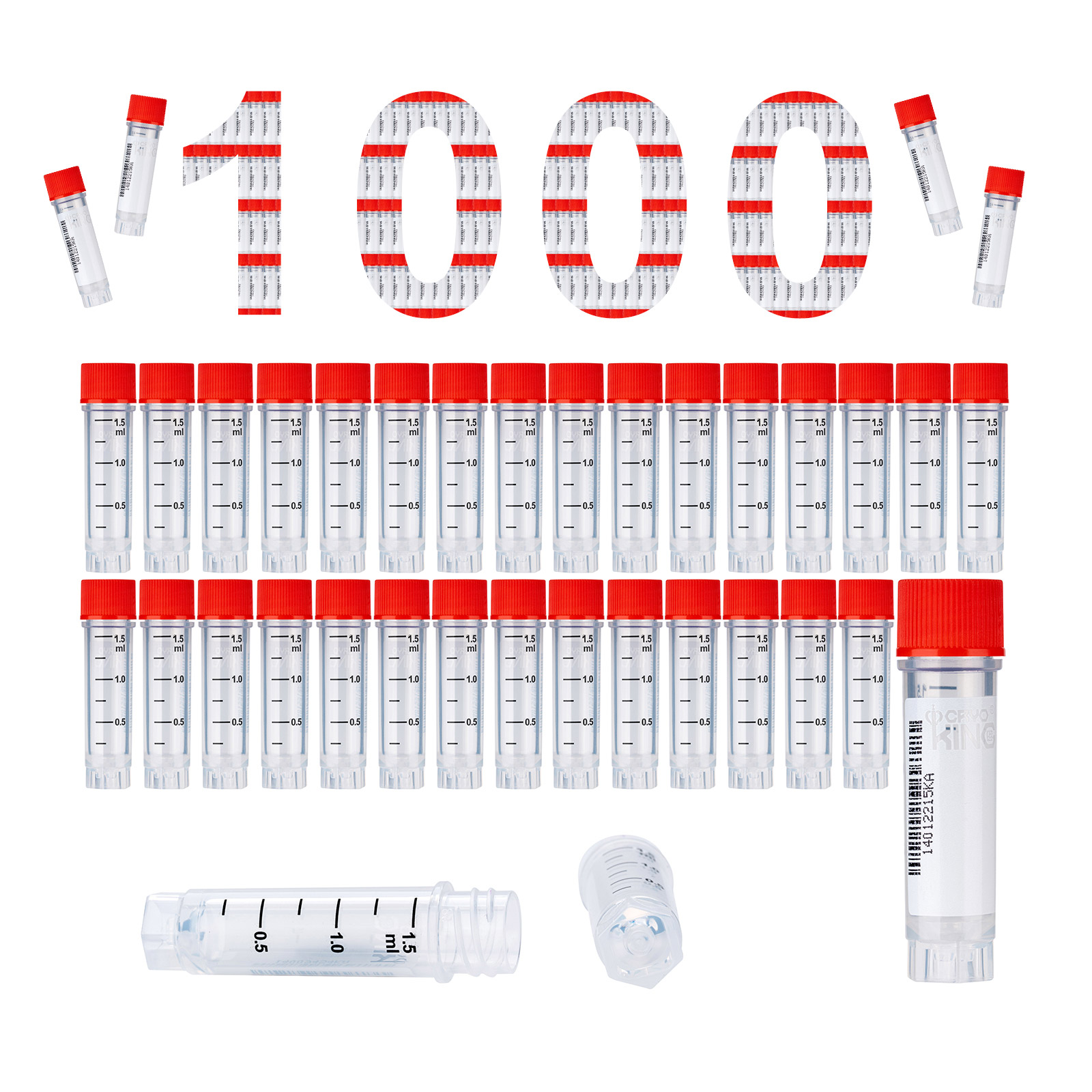 CryoKING 1.5ml vial, red Caps,PP,autoclavable; radiation sterilization, DNase & RNase free, endotoxin free, foreign DNA free, side barcoded , Working Temperature from -196°C to 121°C; Self-standing, No O-ring, 25 Pieces/Bag, 20 Bags/Pack, 2 Packs/Case