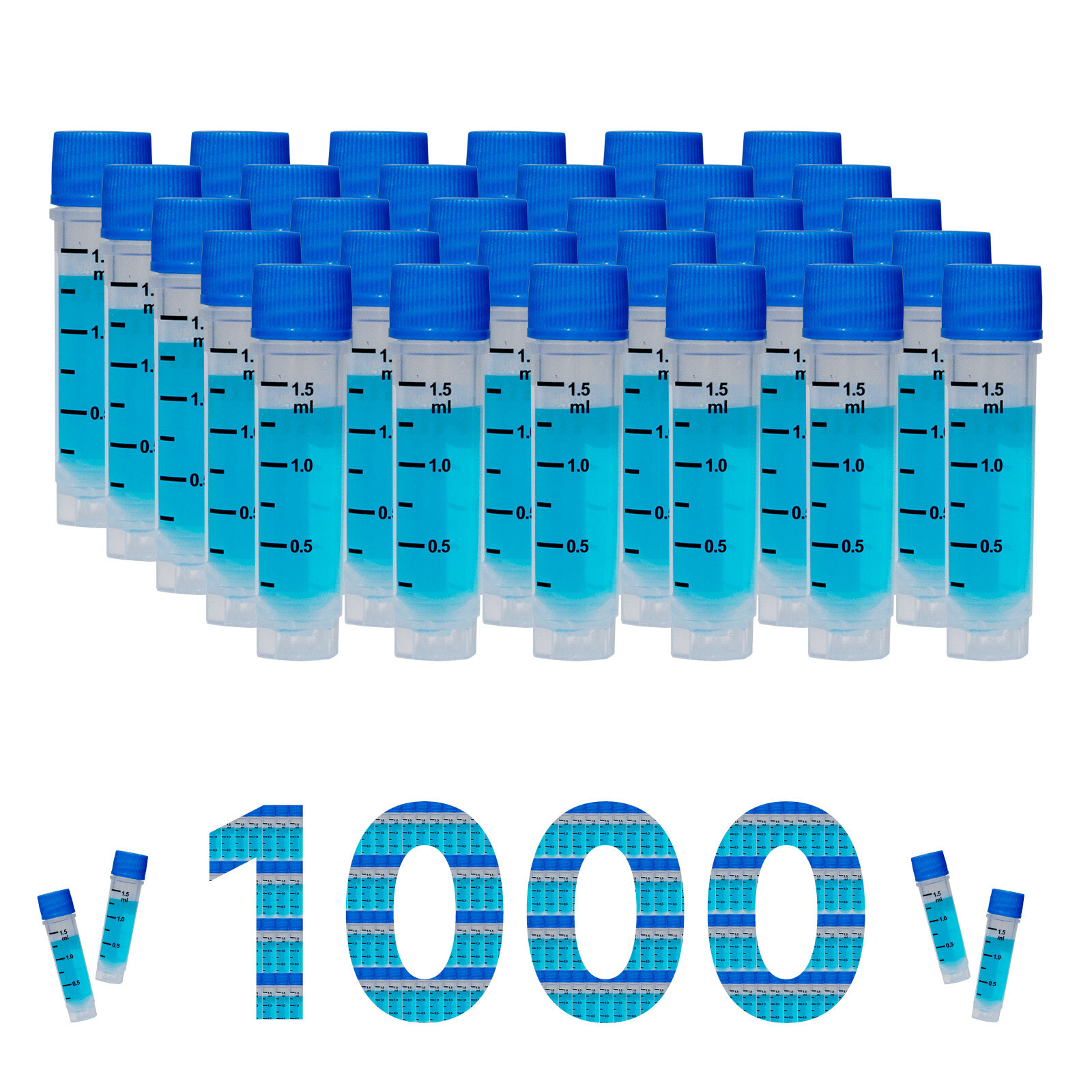 CryoKING 1.5 ml vial, External Thread, Blue Caps, PP, autoclavable; radiation sterilization, DNase & RNase free, endotoxin free, foreign DNA free, no barcode, no barcode, Working Temperature from -196°C to 121°C; Self-standing, with White Printing. No O-ring, 25 Pieces/Bag, 20 Bags/Pack, 2 Packs/Case