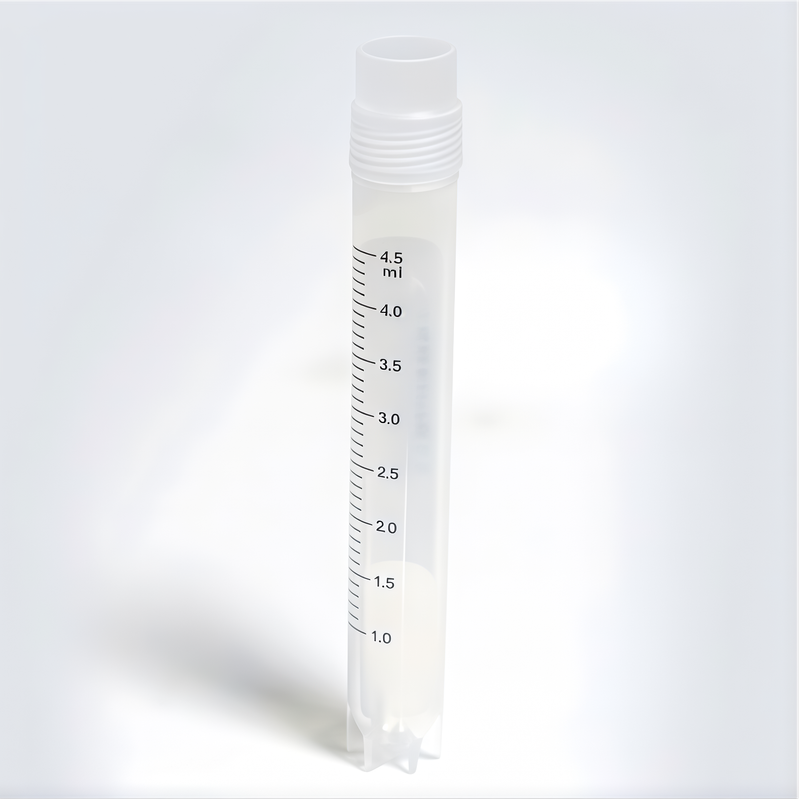 CryoKING 5.0 ml vial, clear Caps,PP,autoclavable; radiation sterilization, DNase & RNase free, endotoxin free, foreign DNA free, side barcode, Working Temperature from -196°C to 121°C; Self-standing, No O-ring, 25 Pieces/Bag, 20 Bags/Pack, 2 Packs/Case.