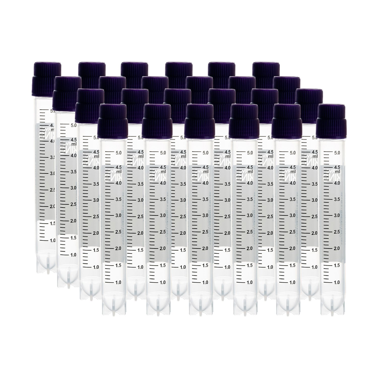 CryoKING 5.0 ml vial, multiple threads, purple Caps,PP,autoclavable; radiation sterilization, DNase & RNase free, endotoxin free, foreign DNA free, side barcode, Working Temperature from -196°C to 121°C; No O-ring, 25 Pieces/Bag, 20 Bags/Pack, 2 Packs/Case