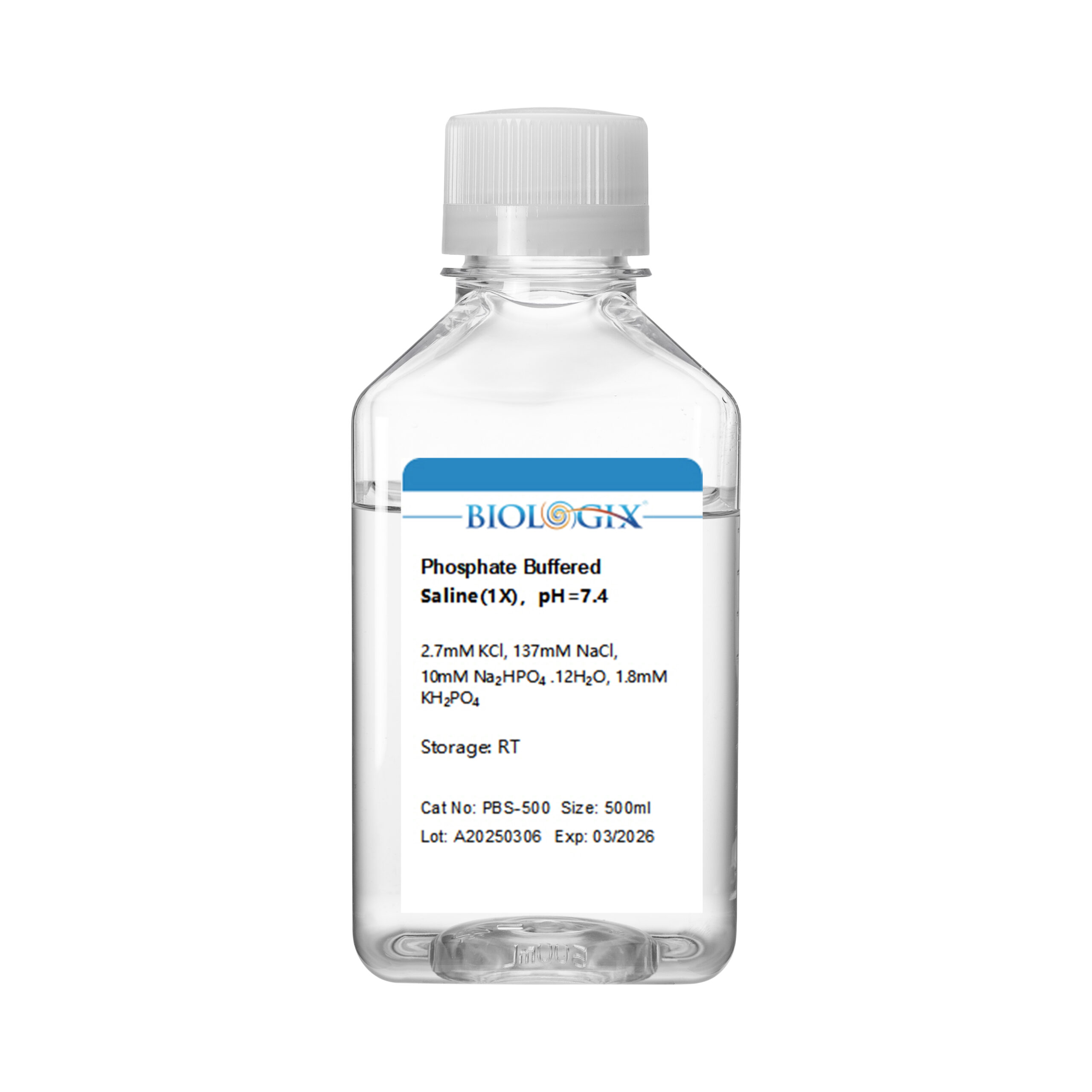 PBS buffer (1×),pH7.4,Sterile,Low Endotoxin, transparency Liquid,Storage: 2-30℃,Transport:2-30℃,Validity: Three years,1000mL/ Bottle, 6 Bottles/Case